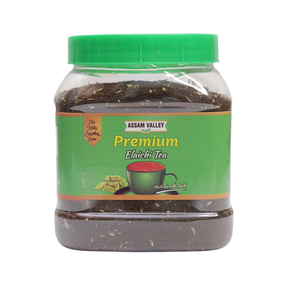 Assam Valley Premium Elaichi Tea is a blend of strong Assam black tea with the aromatic and spicy flavor of cardamom. This combination results in a robust, full-bodied brew that is both rich and soothing, with a sweet, malty taste from the Assam tea and the warm, fragrant essence of elaichi. It is described as a flavorful and aromatic experience perfect for any time of day.